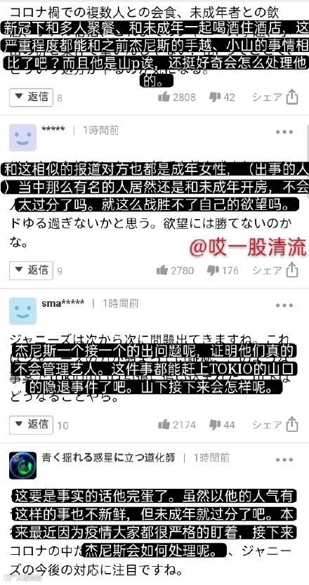 有网友注意到,杰尼斯的处分声明通篇只提到了第一个问题,对“酒店夜宿”只字未提。让不少人觉得这是在欲盖弥彰,因此偏向于认为杰尼斯对山下智久和龟梨和也的不同处分,其实就是对“夜宿”的变相默认。