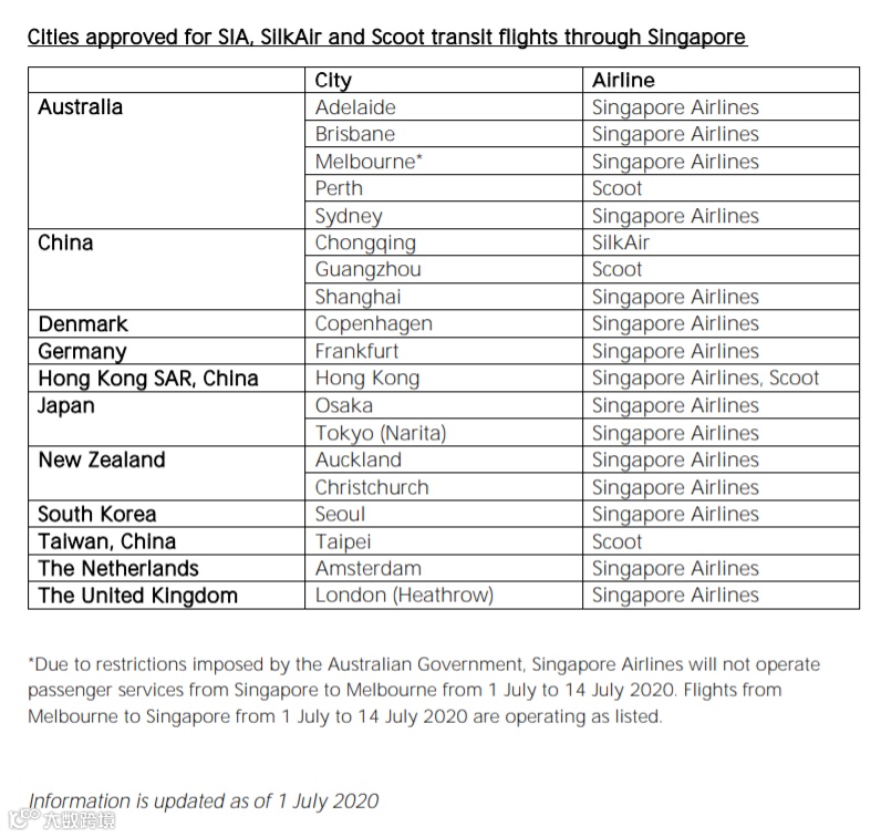 新加坡航空公司集团获得批准的中转航线航点列表(7月1日更新):https://www.singaporeair.com/saar5/pdf/media-centre/200702tableforcitiesapprovedfortransit.pdf
