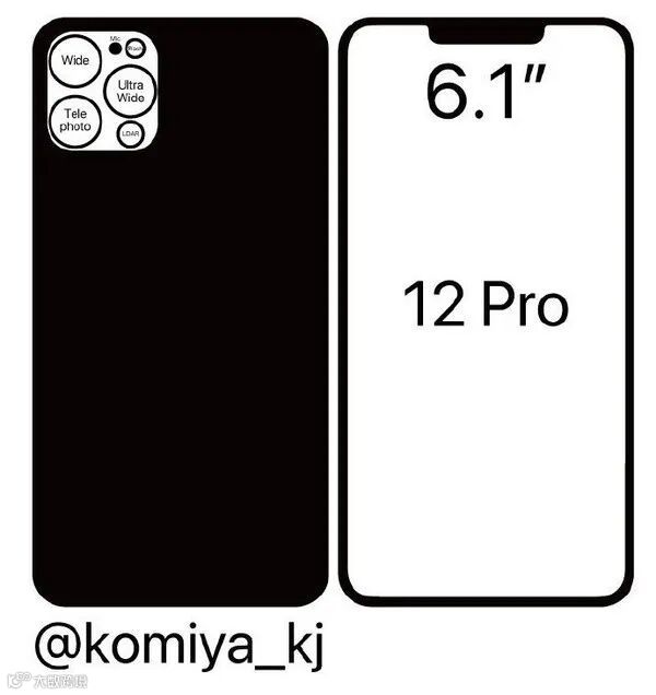 从该博主放出的草图来看,iPhone 12 Pro采用了一块6.1英寸的屏幕。正面依旧是刘海设计,大小貌似没有变化。机身背部除了广角+超广角+长焦镜头外,还加入了iPad Pro同款的LiDAR镜头。同时,摄像头区域还需要放入麦克风以及闪光灯,小小的区域十分拥挤。