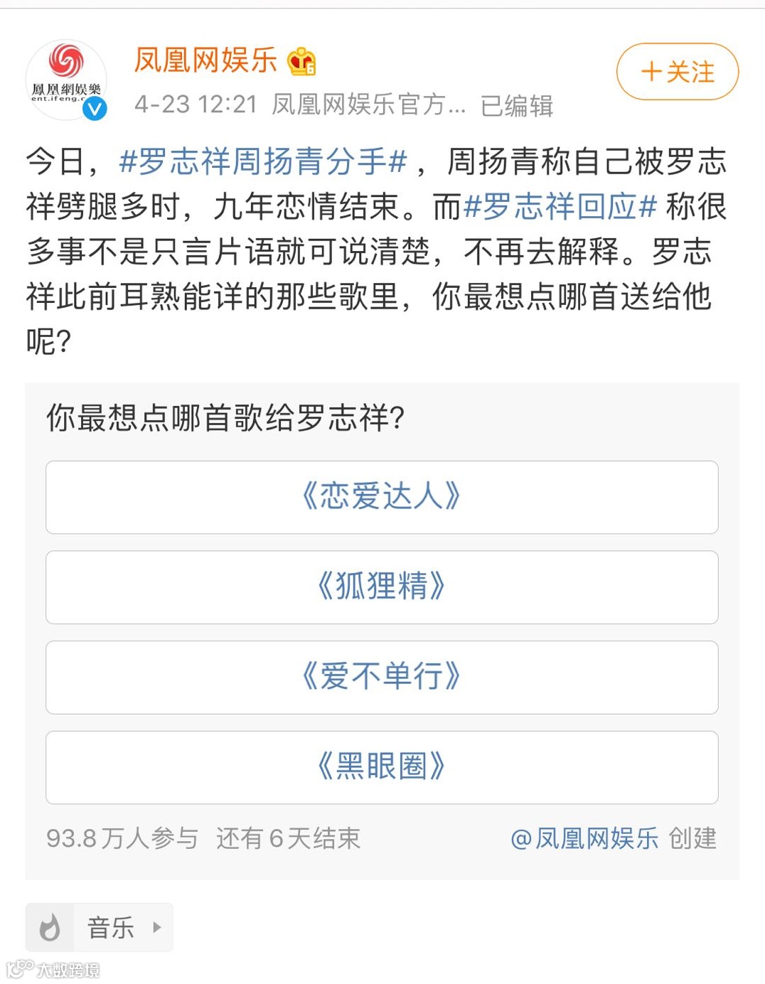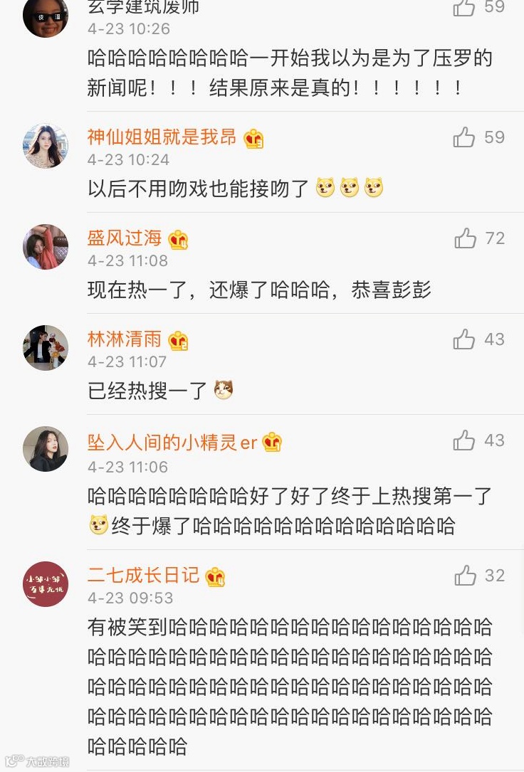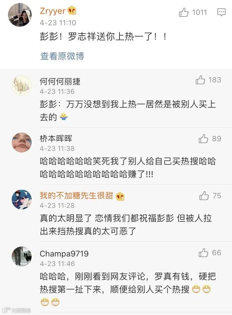 很快周扬青罗志祥分手的热搜就掉了下去,彭昱畅承认恋情飞速窜到了第一。