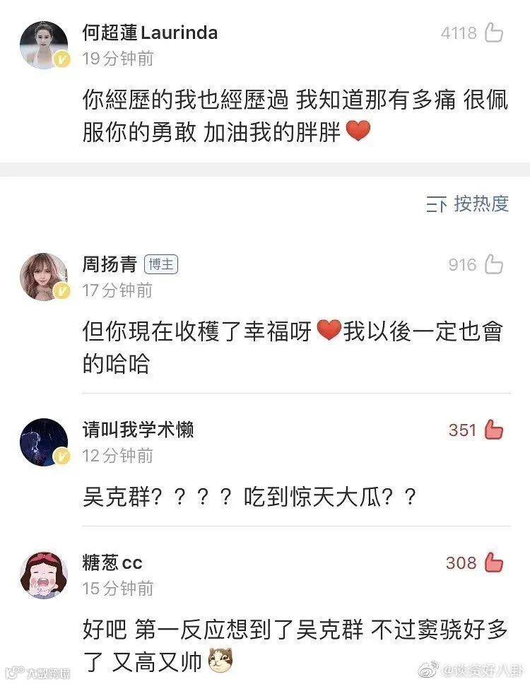 周扬青的发博时间是今天上午9点钟,网友们纷纷清醒吃瓜。