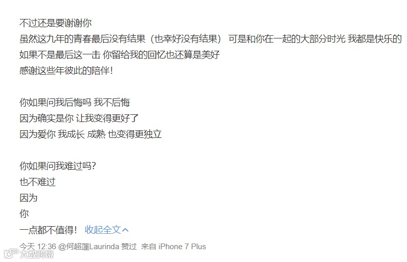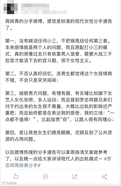看完周扬青的微博小编真的太感动了,纵观娱乐圈分手锤前男/女友,这位的表达能力真的非常棒了!