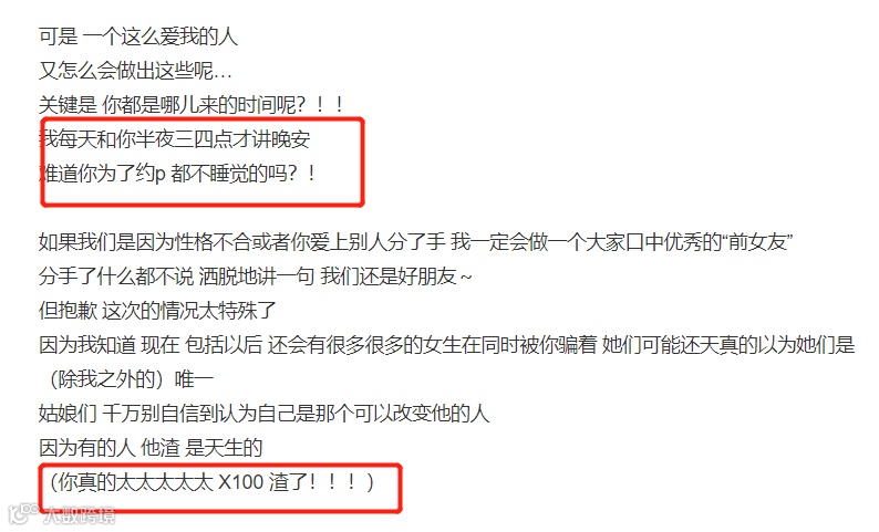 指出罗志祥多次劈腿,跟多位女性有不正当关系,不尊重女生,甚至还进行“多人运动”。