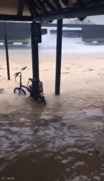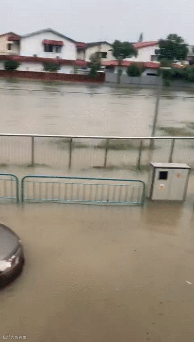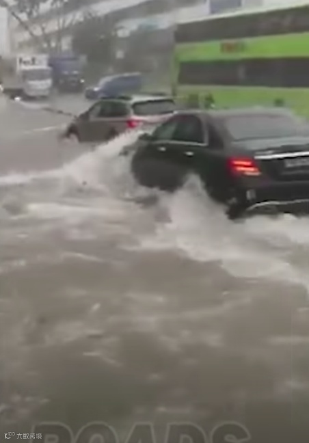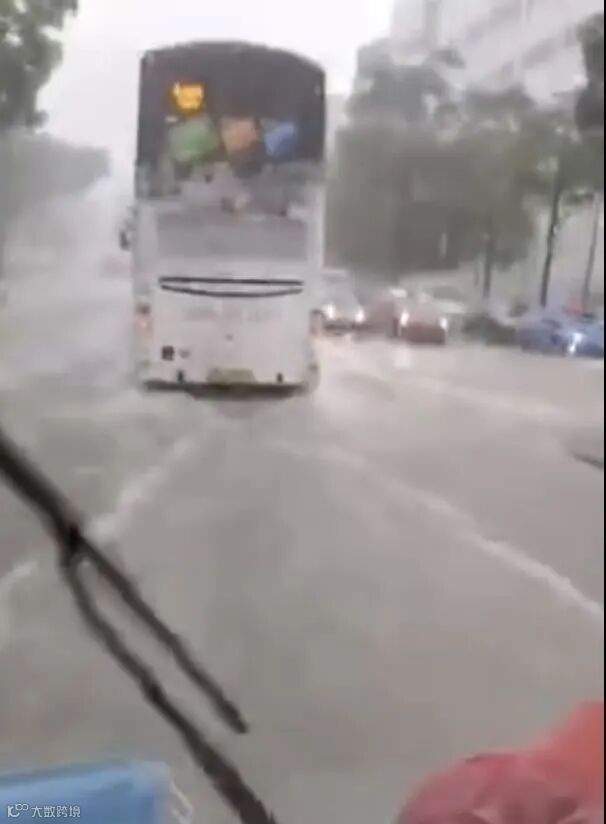接下来再来“欣赏”一下被水淹没的道路有多夸张……