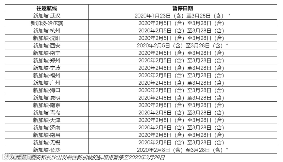1.东航:2月2日-3月28日,所有新加坡航线取消(上海/长春/杭州/泉州/长沙/烟台/昆明);