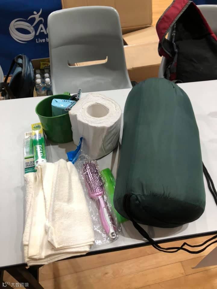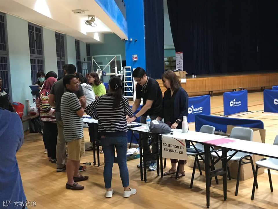 在裕廊东体育馆,马来西亚劳工需要现场登记个人信息,然后将会收到一整套日用必须品,包括洗护用品,毛巾,卫生纸以及一个睡袋。