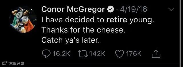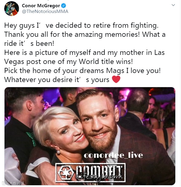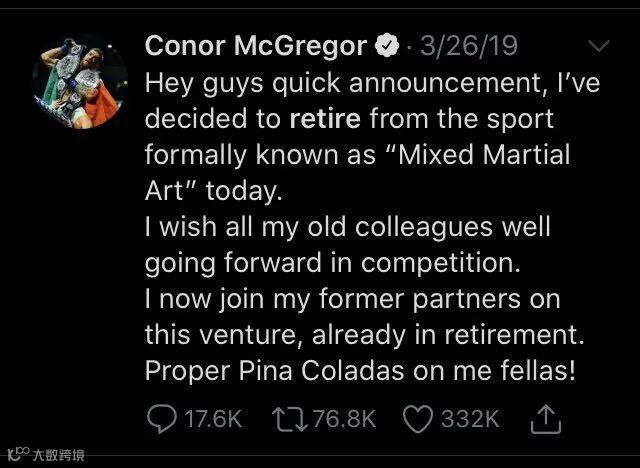 2019年3月26日康纳·麦格雷戈曾在社交网站上宣布退役。