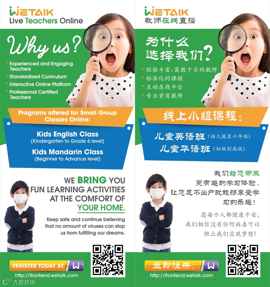疫情当下,即日起WeTalk向社会承诺,直到疫情结束,WeTalk将提供全程免费在线教育,以及在线平台,为所有困在家中的老师们提供教学平台,为孩子们在家中送去及时的学校教育,与家长全社会并肩作战。