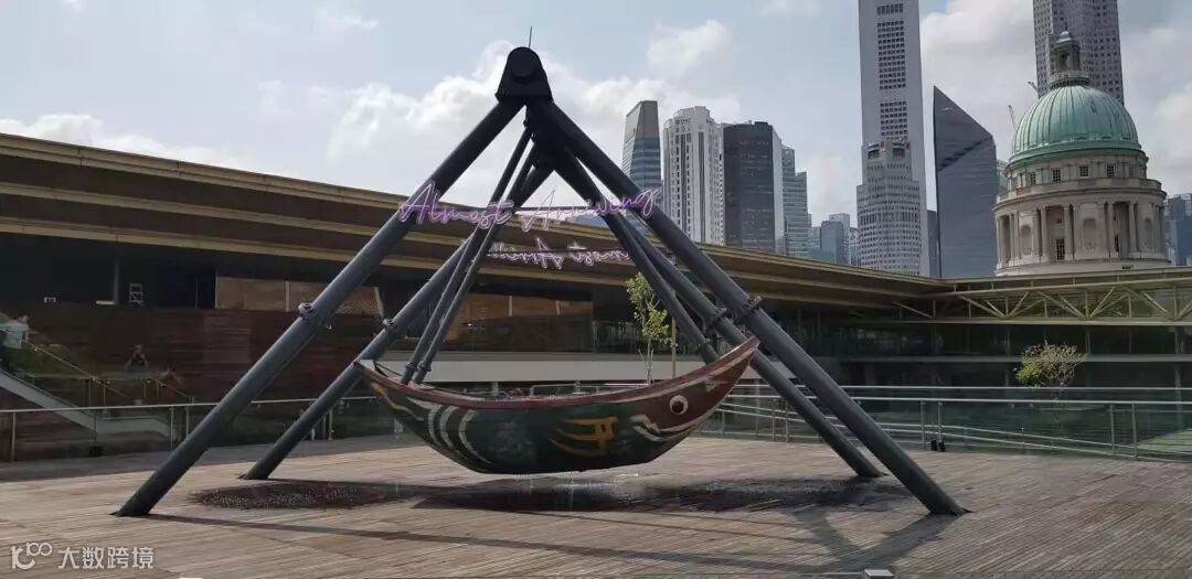 曹斐的这艘浮槎,和四周的建筑相映成辉,这里坐落了新加坡最高法院、国会,不远处便是新加坡的CBD和滨海湾。