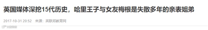“愿天下有情人终成兄妹”,我们有句话叫“祖宗八代”,英国媒体深挖整整十五代让两人变成姐弟关系,是对两人的婚姻有多大的怨念?