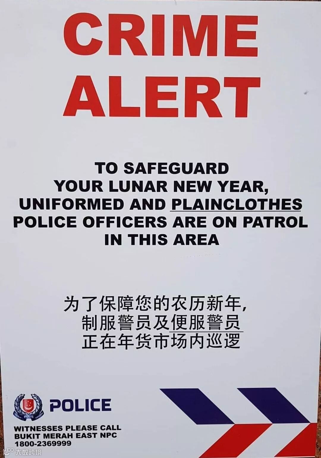 “为了保障您在农历新年期间的安全,制服警员和便服警员会在年货市场内巡逻”?