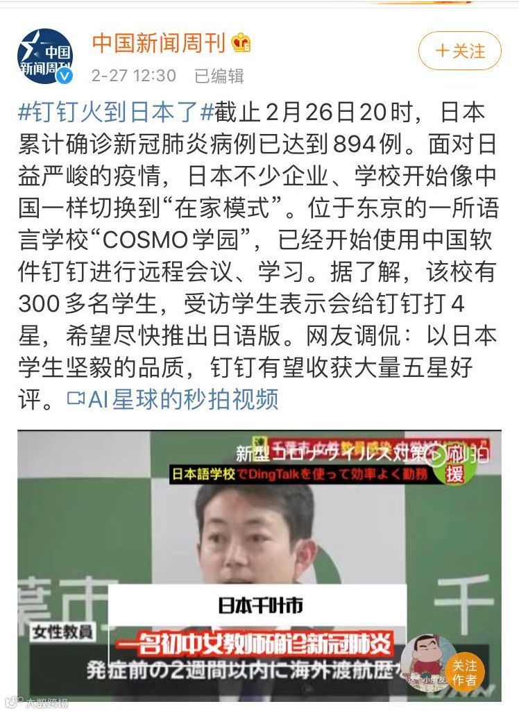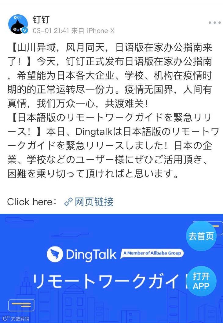 当然也有人说其实日本疫情刚爆发的时候,钉钉就已经开始使用了。