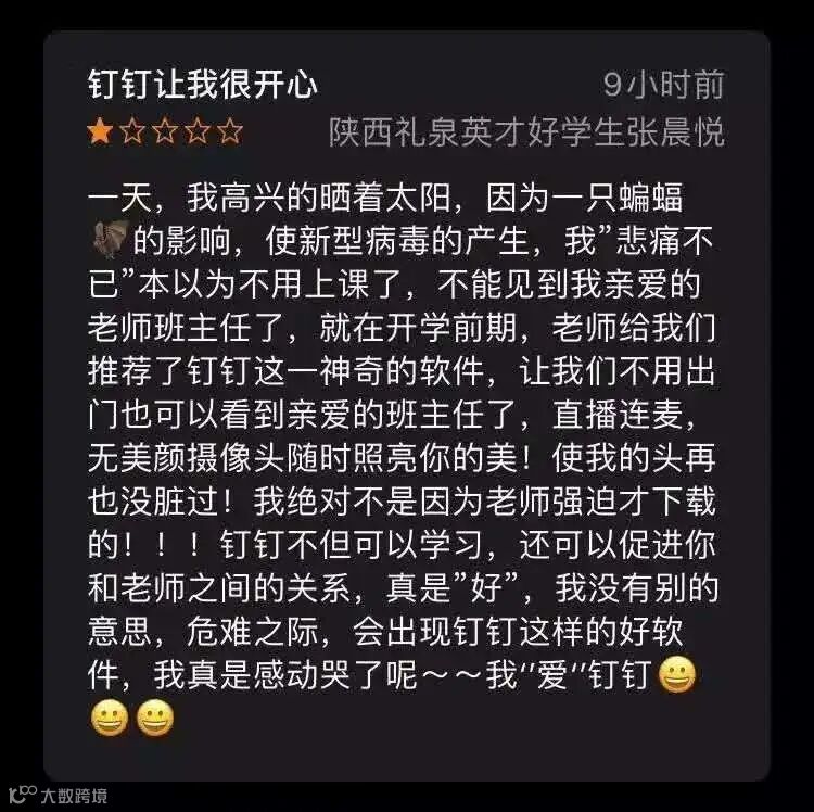 回顾中国小学生给钉钉刷负分