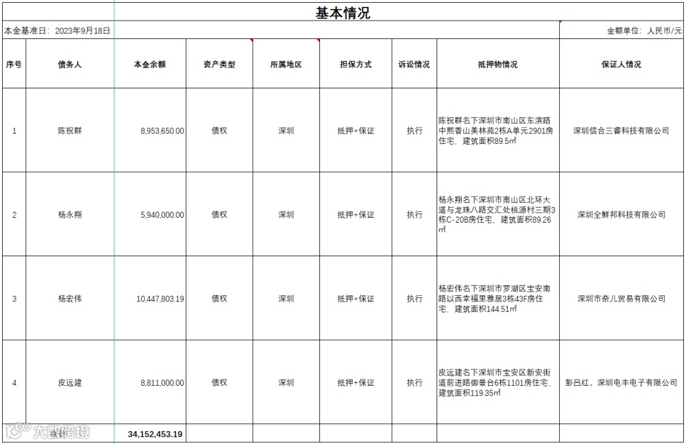 广州广永投资管理有限公司拟公开征集陈祝群等4户不良债权资产包的意向客户,项目基本信息如下: