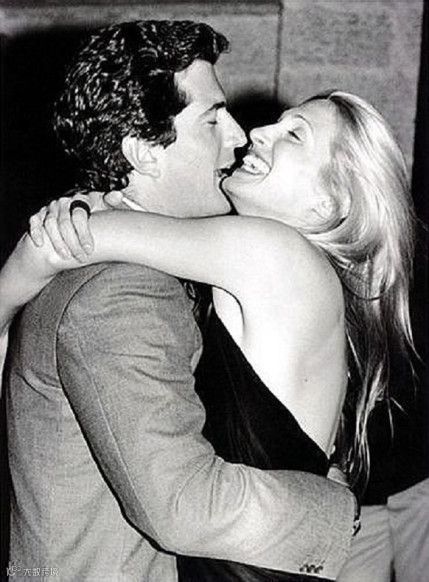 ▲1999年,在每年的白宫记者会晚宴后,小肯尼迪给怀里的妻子一个吻。
