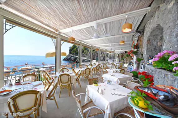 Il Pirata餐厅就位于小镇正对海面的海崖凹槽处,它的露台更是直接建在了石头海岸上。