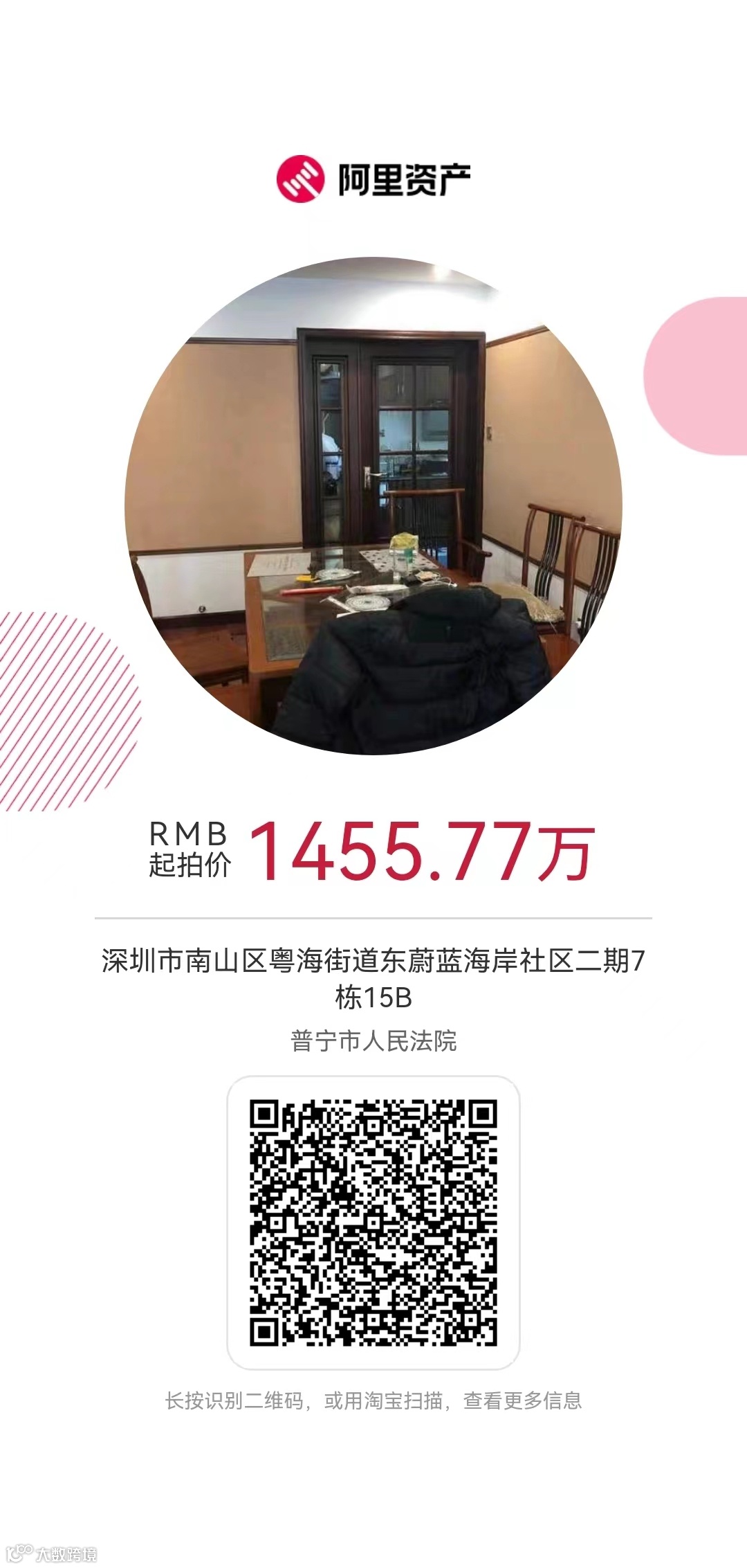 被执行人吴*玉名下位于广东省深圳市南山区后海路东蔚蓝海岸社区二期7栋15B的房产(不动产权证书号:深房地字第4000079931号);拍卖物建筑面积:177.3平方米;拍卖物用途:住宅;拍卖物性质:商品房。