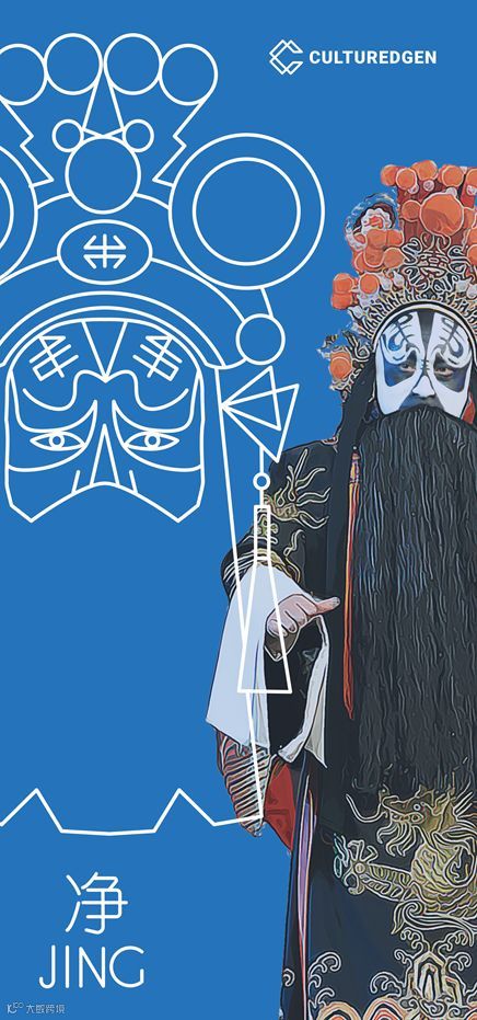 净角指脸画彩图的花脸角色,看来并不干净,故反其意为“净”。