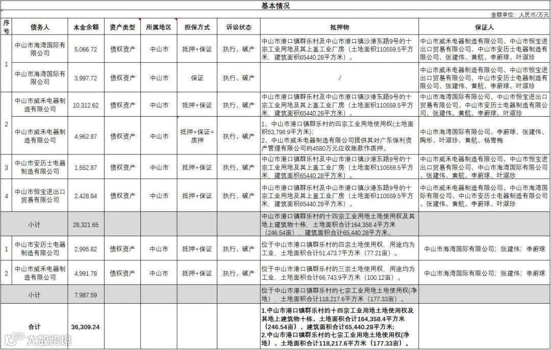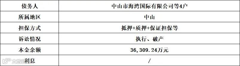 广州广永投资管理有限公司拟公开征集中山市海湾国际有限公司等4户债权资产包及中山市安历士电器制造有限公司等2户债权资产包的意向客户,项目基本信息如下: