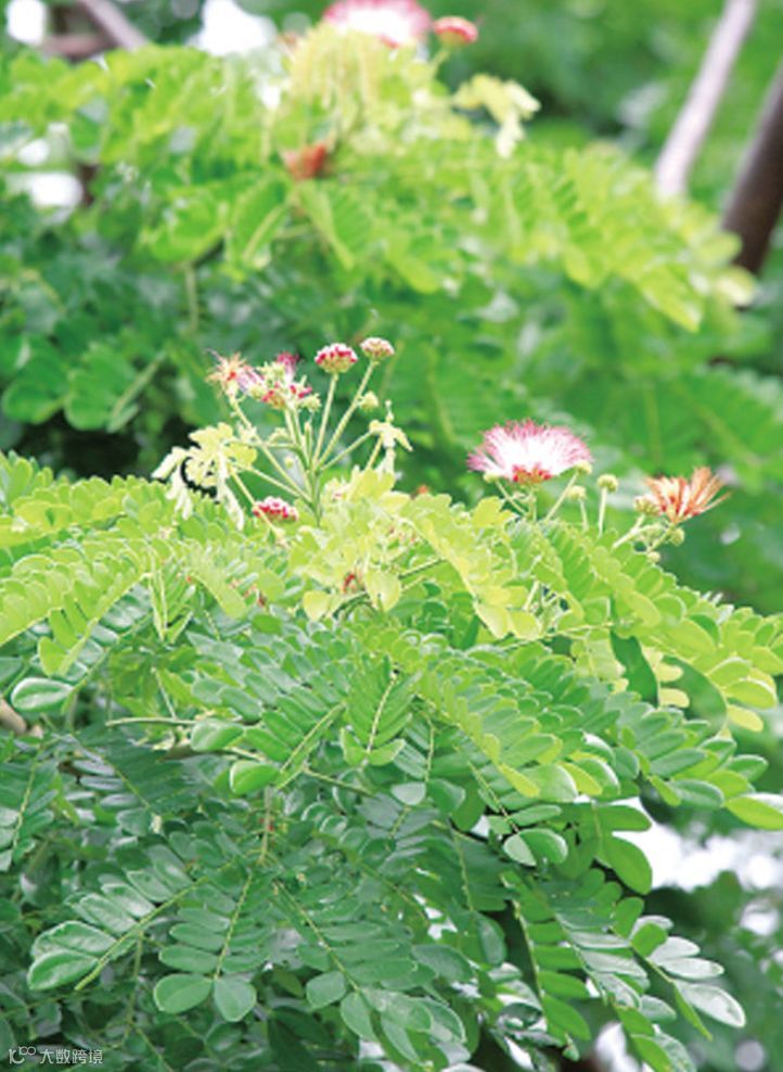 雨树(学名:Samanea saman (Jacq.) Merr.)是豆科雨树属植物,无刺大乔木;树冠极广展,干高10-25米,分枝甚低;总叶柄长15-40厘米,羽片及叶片间常有腺体。花玫瑰红色,组成单生或簇生、直径5-6厘米的头状花序,生于叶腋。果瓣厚,绿色,肉质,成熟时变成近木质,黑色;种子约25颗,埋于果瓤中。花期8-9月。