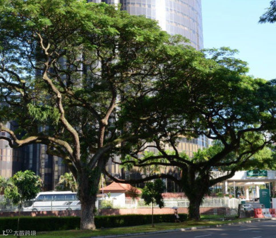 这是Hyatt Hotel前面一排中的其中一棵雨树