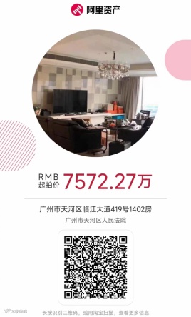 广州市天河区临江大道419号1402房(侨鑫汇悦台1402房),建筑面积:365.8933平方米,专有建筑面积:299.8840平方米,分摊建筑面积:66.0093平方米。参考市价:75722765元。