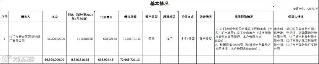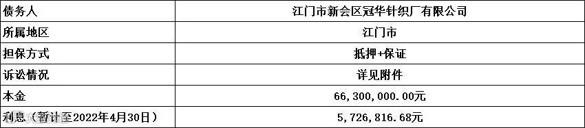 广州广永投资管理有限公司拟公开征集江门市新会区冠华针织厂有限公司单户不良债权项目的意向客户,项目基本信息如下: