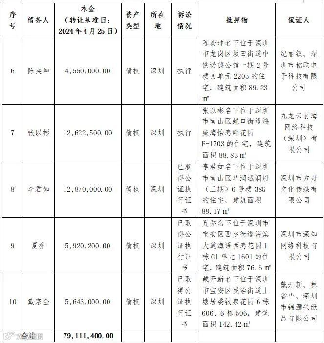 以上债权信息仅供参考,我公司不对其承担任何法律责任,具体债权情况最终以借据、合同、催收通知书、相关部门产权登记、工商管理部门登记及生效法律文书等有关资料为准。