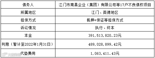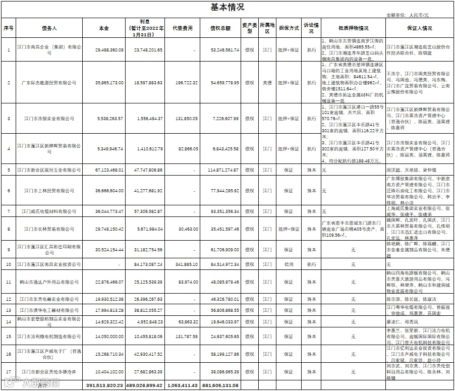广州广永投资管理有限公司拟公开征集江门市南昌企业(集团)有限公司等17户不良债权项目的意向客户,项目基本信息如下: