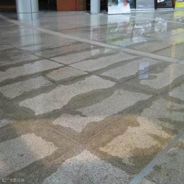 如果清洗石材表面时,由于石材表面有油等污渍,或者清洗水不干净,水将污染物带进了石材里面,在表面所形成的湿痕,经pH值试纸测试后呈红色或者黄色,则可以判定为渗入性水斑,这种水斑可以用物理烘烤法和化学清洗法来清除。