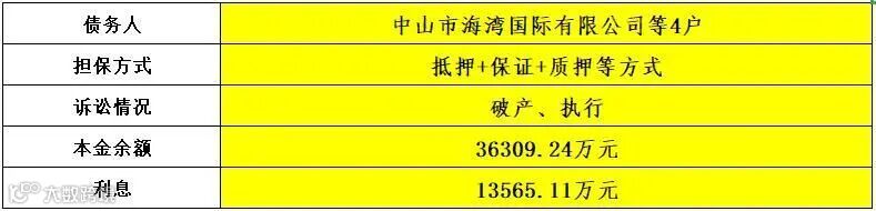 广州广永投资管理有限公司现公开征集中山市海湾国际有限公司等4户债权项目的意向客户,项目基本信息如下: