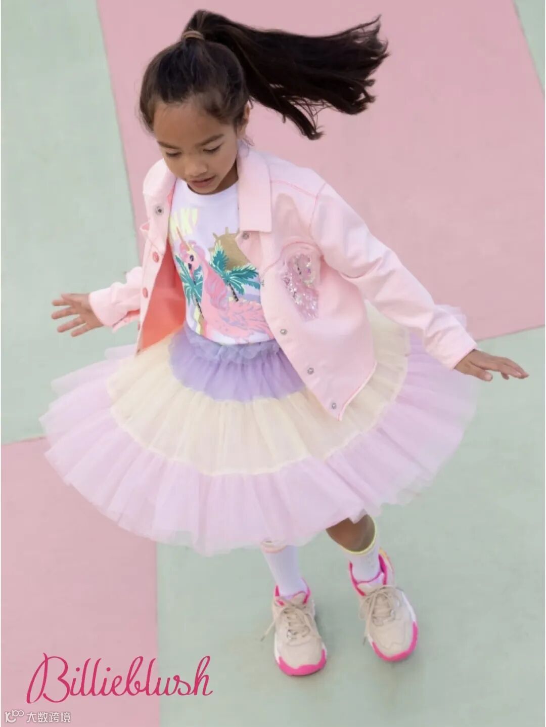 来自法国的BILLIEBLUSH,专注趣味十足与时尚前卫的设计,活泼、有动感,专为喜爱俏皮时髦设计感的孩子打造。BILLIEBLUSH 2026春夏系列,延续标志性的荧光色彩与经典T恤纱裙、牛仔单品等,此外本季新选度假风的棉麻套装款式,让孩子自在切换日常与度假的童年状态。