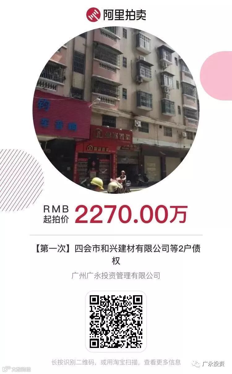 广州广永投资管理有限公司将于2019年12月18日10时至2019年12月18日16时止(延时的除外)在淘宝网资产竞价网络平台上对持有的四会市和兴建材有限公司等2户债权项目进行公开挂牌转让,转让基准日2019年11月30日。