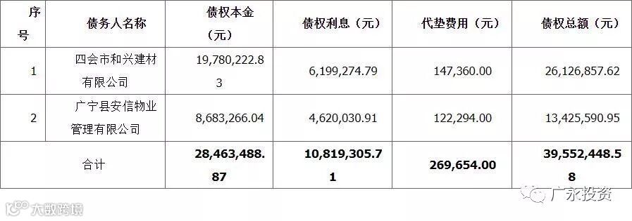 四会市和兴建材有限公司等2户债权项目债权本金、利息等如下: