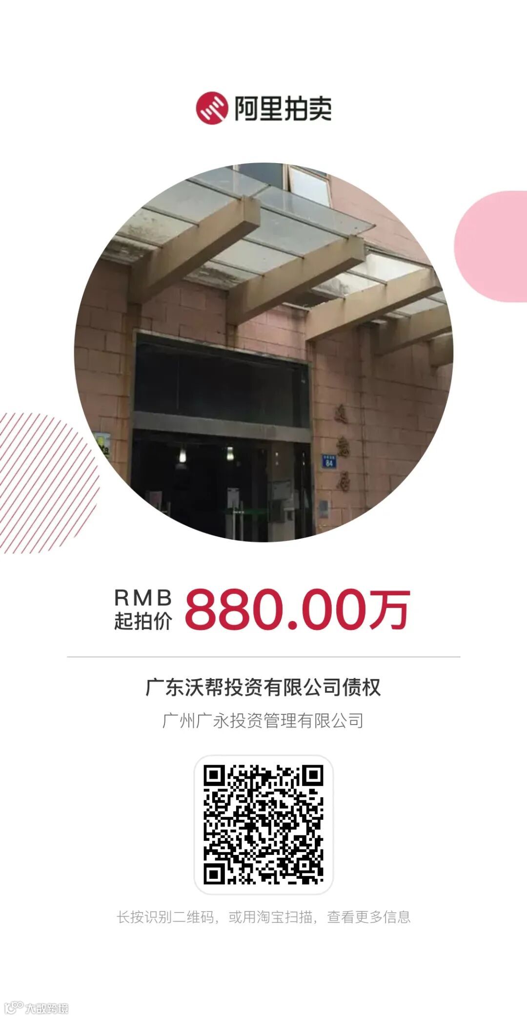 广州广永投资管理有限公司将于2020年12月28日9时至2020年12月28日16时止(延时的除外)在淘宝网资产竞价网络平台上对持有的广东沃帮投资有限公司债权项目进行公开挂牌转让,转让基准日2020年11月30日。