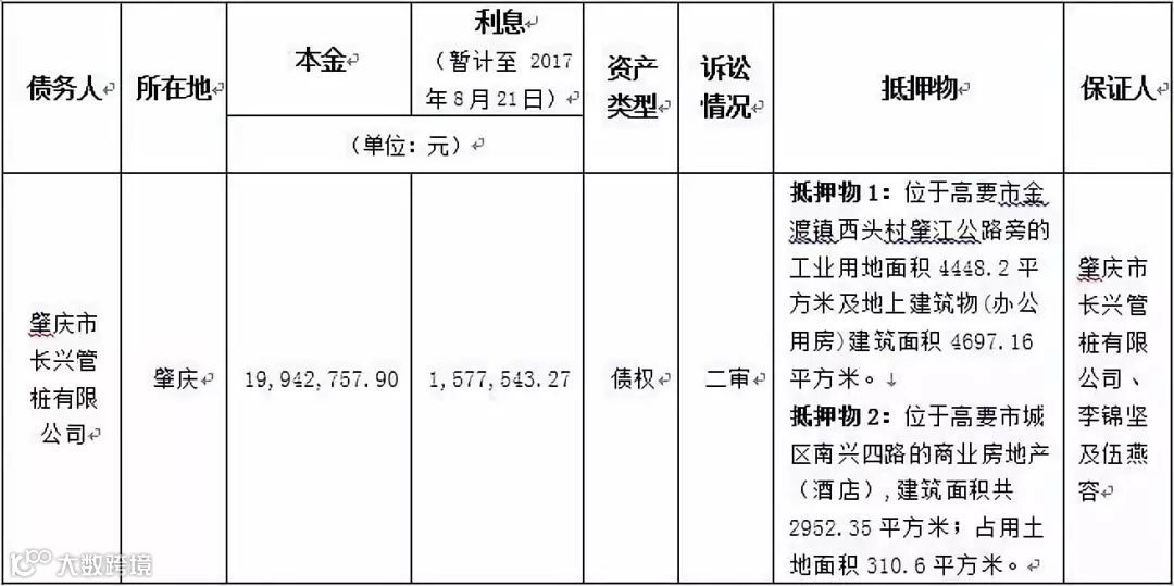 一、拟处置债权:肇庆市长兴管桩有限公司债权,具体详见下表: