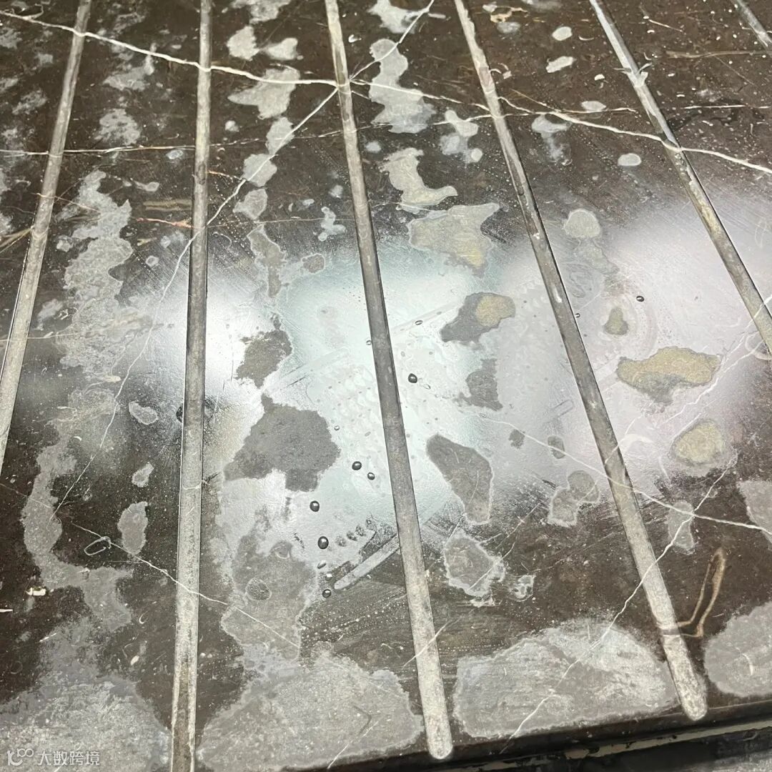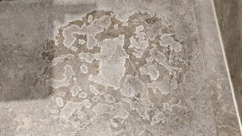 石材表面之所以产生水垢,主要是水质问题,原因是硬水地区的水钙、镁离子含量偏高,水滴在石材表面蒸发后,矿物质留下形成白色或灰白色的结晶体。