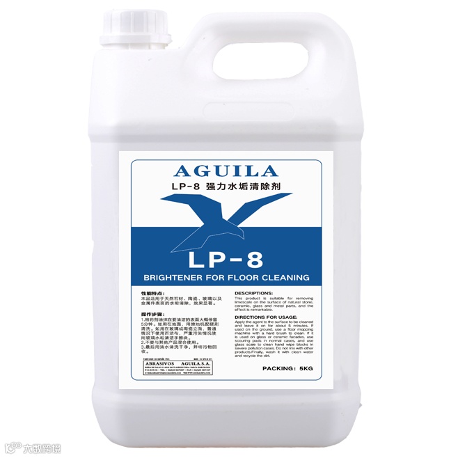 第三,重度水垢(已沉积多时,表层很厚且非常坚硬)。将LP-8专用水垢清洁剂涂抹在水垢表面,让其充分反应(约5分钟,会起泡),再用手提翻新机配研磨刷或者浅翻垫来打磨。如一次不彻底则反复多次,直到将水垢清除干净为止,最后用大量的水冲洗,切勿有化学残留。