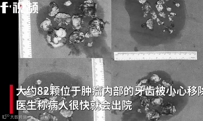 大约 82 颗位于肿瘤内部的牙齿被小心移除,医生称病人很快就会出院。