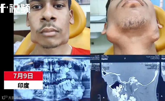 7月9日,印度比哈尔邦一名17岁的男孩下巴上有82颗牙齿!
