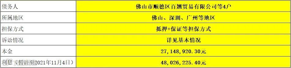 广州广永投资管理有限公司拟公开征集佛山市顺德区百翘贸易有限公司等4户债权项目的意向客户,项目基本信息如下: