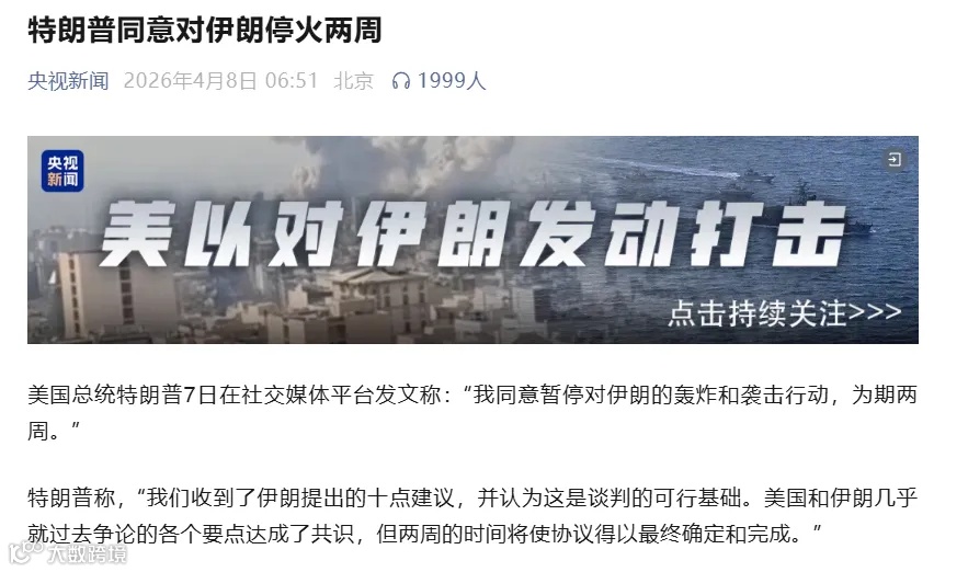 停火仅为两周临时协议,最终结果取决于伊斯兰堡谈判,若谈判破裂,海峡或再度关闭。 -