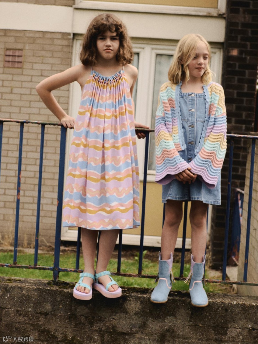 Stella McCartney为婴幼儿至学龄儿童打造全年龄段衣橱,从俏皮印花T恤、荷叶边连衣裙到休闲风套装,覆盖多元风格。品牌延续成人线的环保理念,所有童装均采用可持续制作方式,守护自然的同时陪伴孩子从牙牙学语到校园生活的每一步。