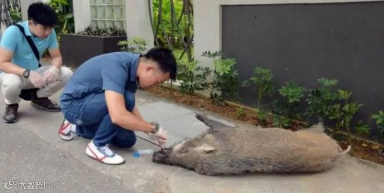 4月17日,新加坡发现了一只受伤的野猪。