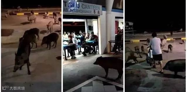 2017年6月,大士巴士终站食堂附近出现了20多只野猪!估计是野猪全家出门找食物,现场更有人给野猪投掷食物,野猪们则是毫不畏惧,大胆接受。