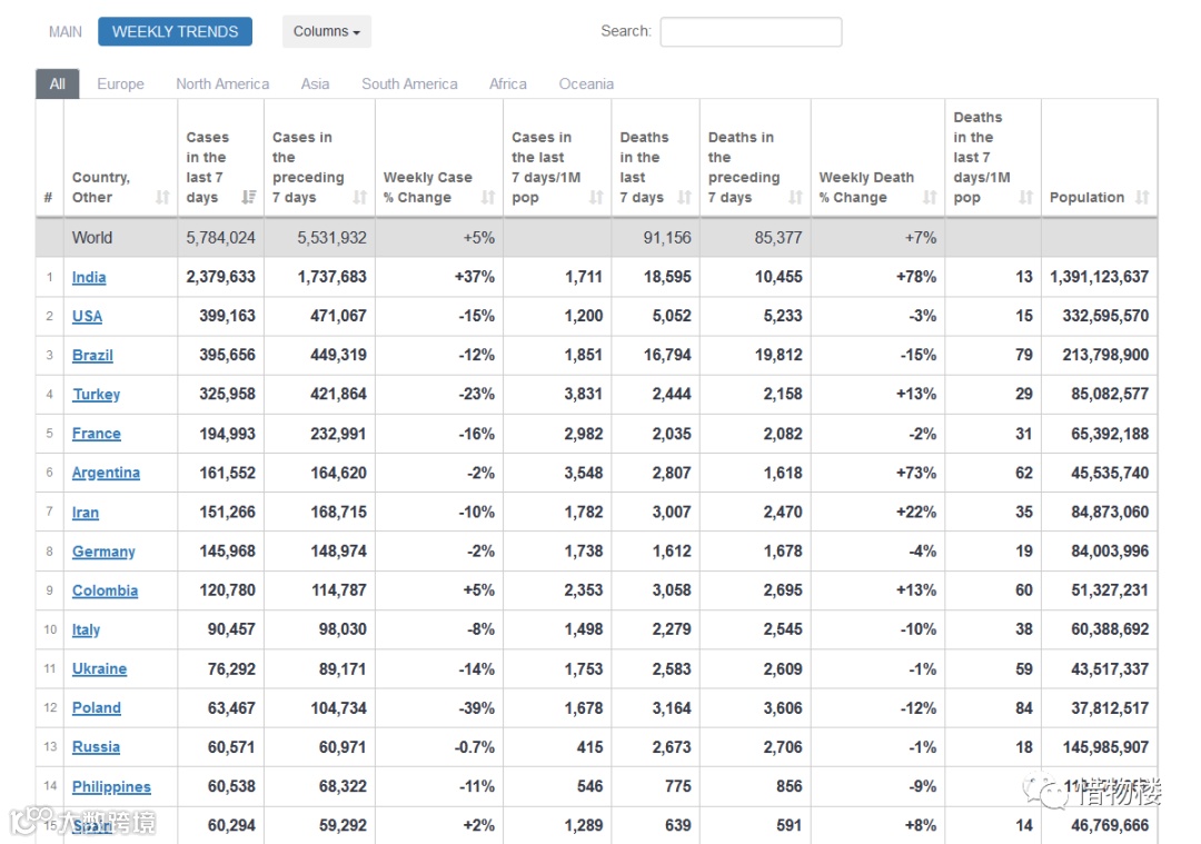 1,除了印度之外,世界大多数国家的疫情在缓解