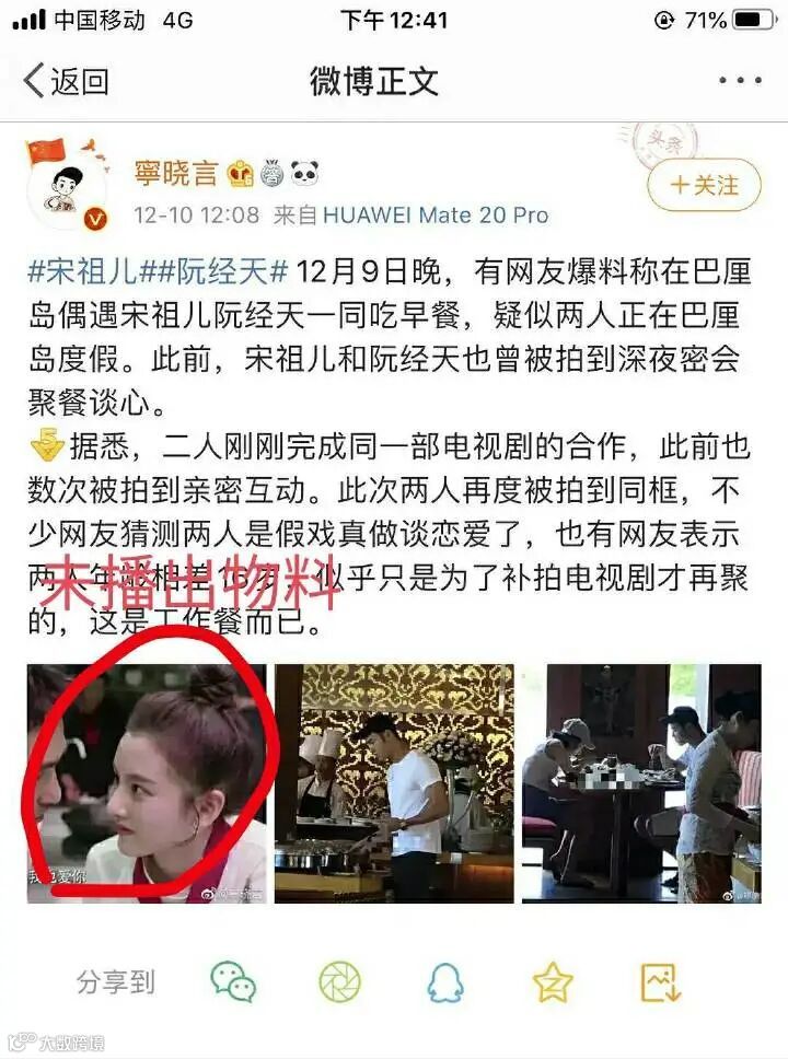 2019年12月10日,有网友爆料在巴厘岛偶遇两人并带未播出物料度假,然而实为电视剧补拍。