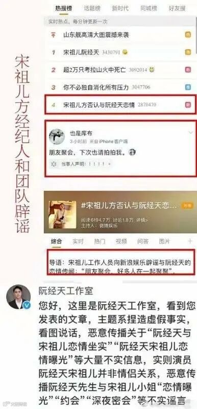 2020年1月7日,媒体报道两人聚会恋爱,实为朋友聚会,团队买热搜主动联系媒体否认恋情,经纪人辟谣。