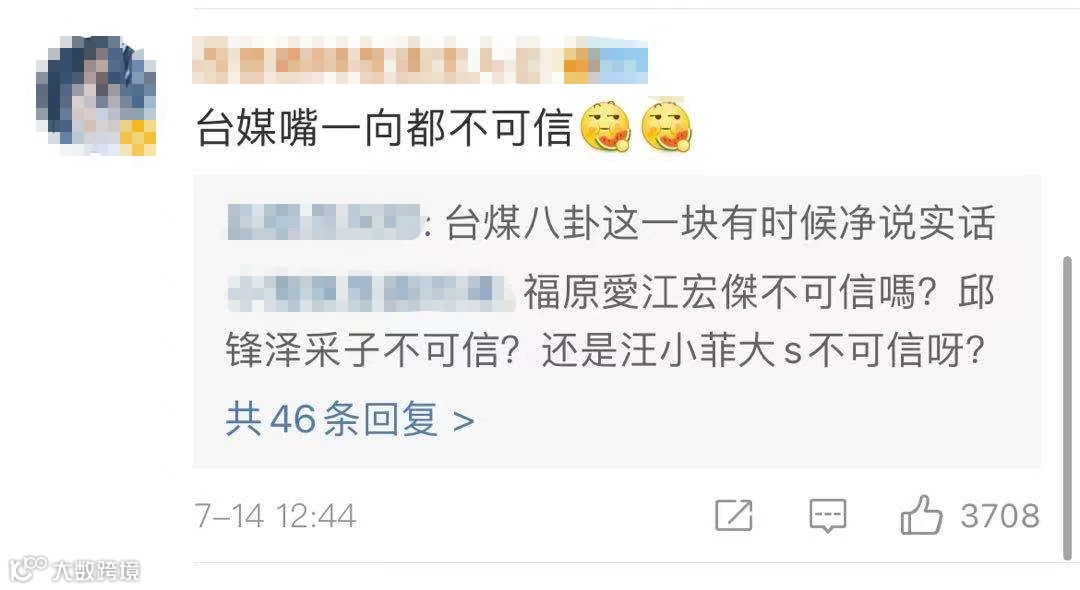 关于娱乐圈的这些事儿,我们还是要理智吃瓜。有网友表示,台媒不可信。