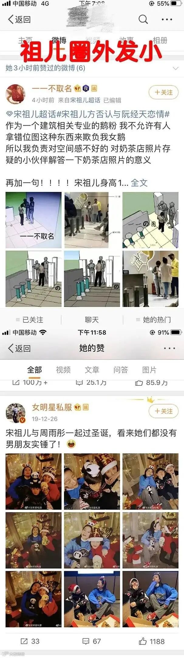 另外,粉丝表示,不知台媒如何联系到宋祖儿好友,也不知这位所谓的“好友”姓甚名谁,但是宋祖儿真.亲闺蜜(圈外人)亲自点赞过宋祖儿澄清贴和单身贴。